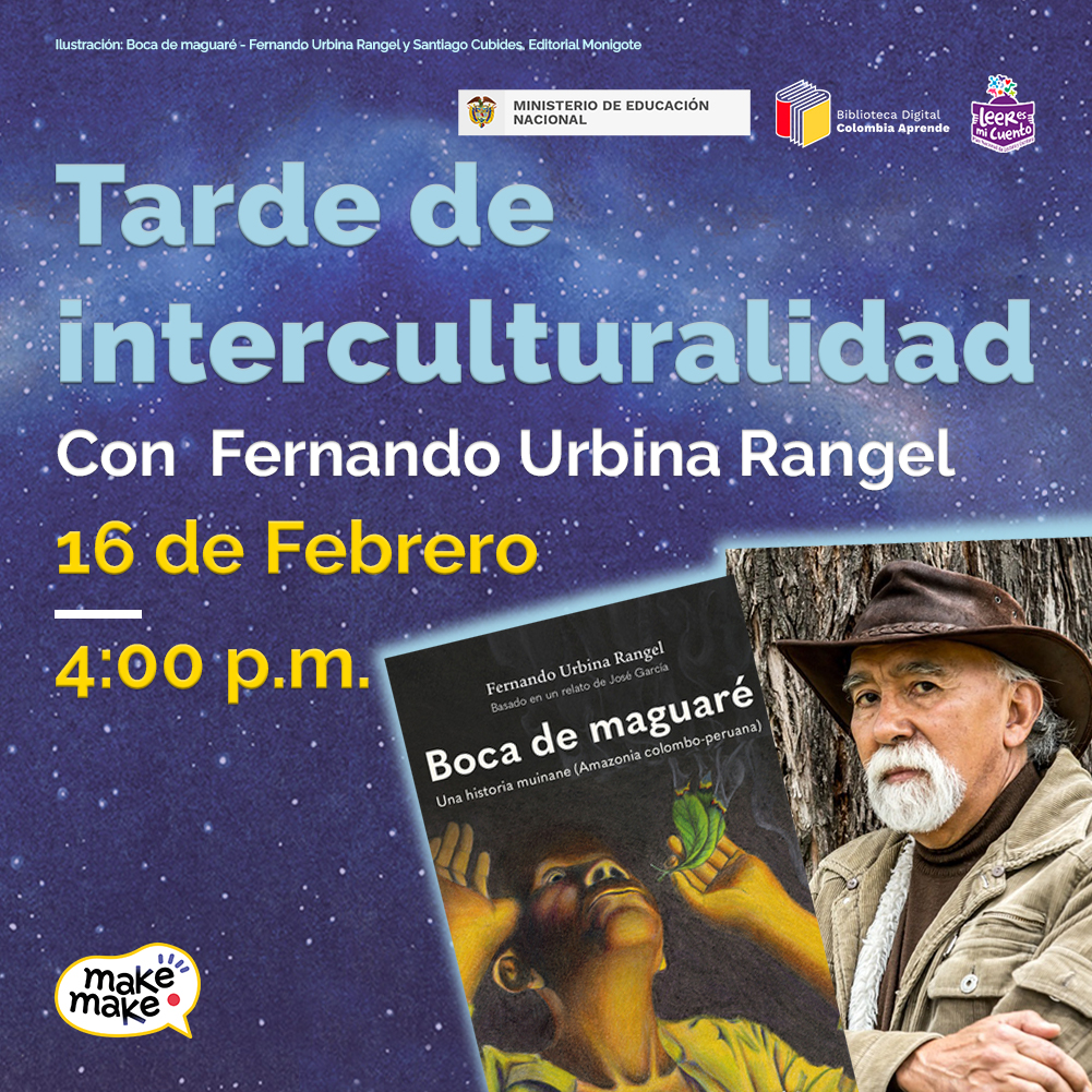 El equipo de la Biblioteca Digital Escolar del Ministerio de Educación Nacional en articulación con la Secretaría de Educación Departamental INVITAN a toda la comunidad educativa, directivos, docentes, estudiantes y padres de familia a una tarde de interculturalidad, a través de la participación en un evento que se realizará el jueves 16 de febrero a las 4:00 p.m en modalidad virtual.