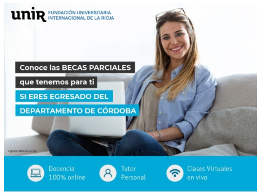 Me permito de manera muy cordial compartir con ustedes, de parte de la Universidad Internacional de la Rioja- UNIR, y la Fundación Universitaria Internacional de la Rioja, información relacionada con becas parciales para realizar estudios de pregrados, especializaciones y maestrías; así mismo les extiendo la invitación para que nos visiten en la sede Montería, ubicada en la Av. 1 calle 31 Torre Garcés.