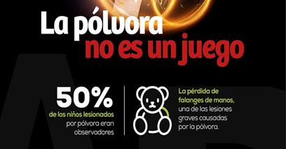 En reiteradas ocasiones se advierte a través de todo tipo de propaganda y mensajes publicitarios que entre los principales peligros que causa el manipular pólvora están: