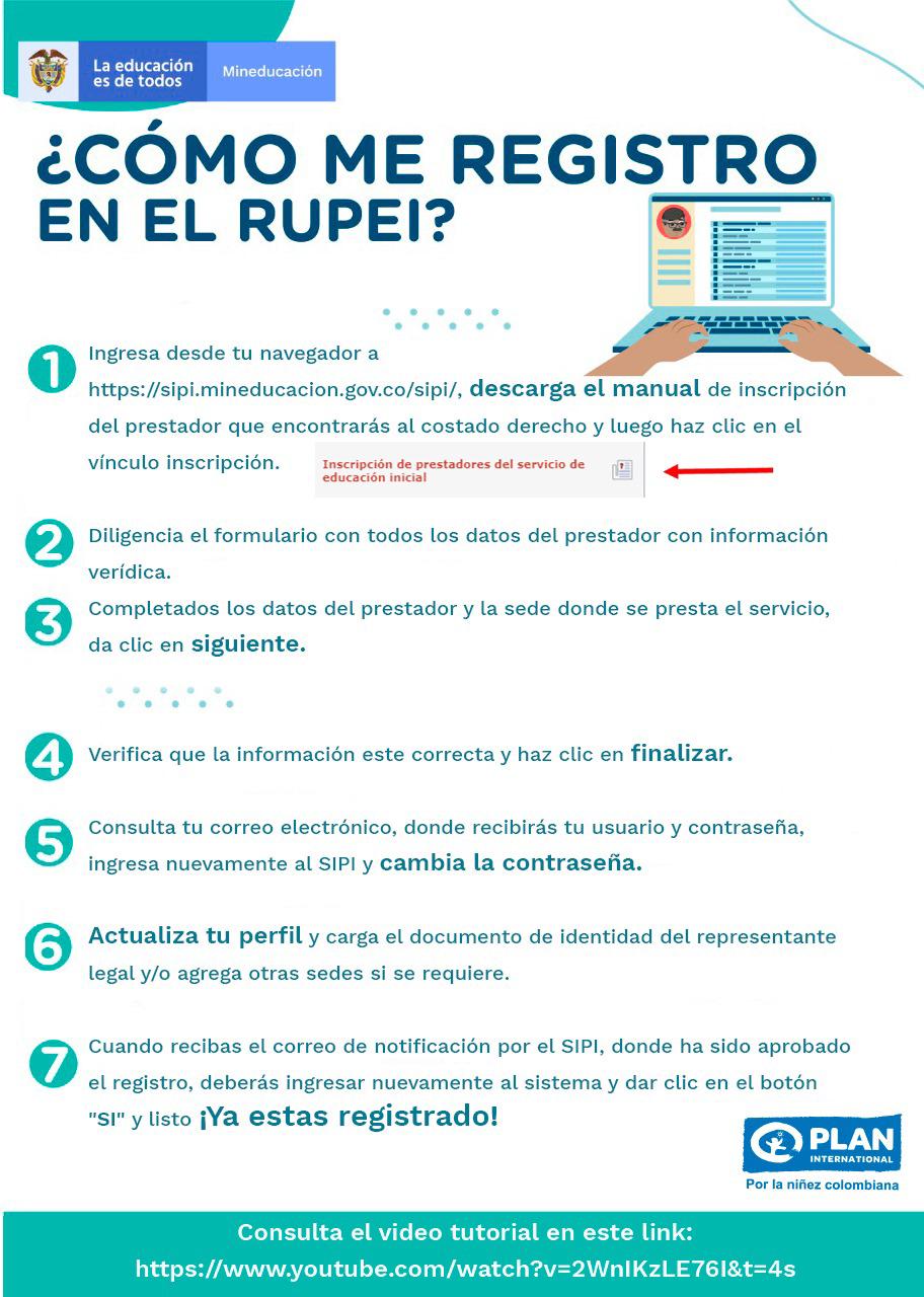 Es el momento de obtener tu RUPEI -Registro Único de Prestadores de Educación Inicial. El RUPEI permite que tus servicios sean visibles en la comunidad, cualificar la atención que ofreces y fortalecer la calidad de la atención integral. Si quieres inscribirte diligencia este formulario shorturl.at/gpzJ6 o comunícate al WhatsApp: 3032768563 Para más información al correo electrónico: icampo@plan.org.co #Salacunas #Párvulos #Guarderías #Caminadores #EducaciónInicial #PrimeraInfancia