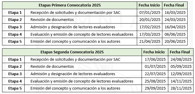 La Secretaria de Educación Departamental de Córdoba y el Comité Evaluador de Obras, en atención al Literal c del artículo 9 del Decreto 00495 de agosto 25 del 2023, se permite informar y publicar el Calendario Anual de Aceptación y Evaluación de Obras, correspondiente a las dos convocatorias para el año 2025, en virtud de lo dispuesto por el artículo 10 y subsiguientes del mencionado decreto, quedando las dos convocatorias definidas acorde a los siguientes cronogramas: