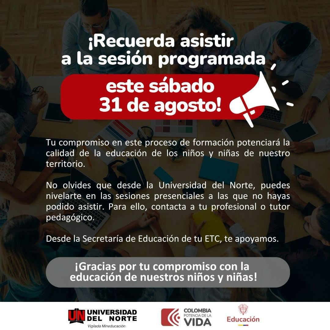 RECORDATORIO SESIÓN PRESENCIAL A MAESTRAS Y MAESTROS DE ETC CÓRDOBA - PROYECTO MEN - UNINORTE