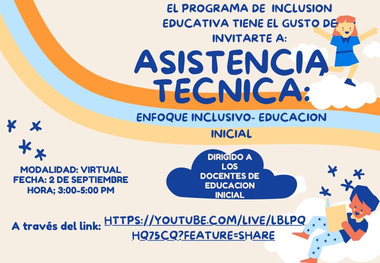 En aras de fortalecer el trabajo interinstitucional en la atención educativa a los estudiantes con discapacidad o trastornos específicos del aprendizaje o del comportamiento, capacidades y talentos excepcionales , la Secretaría de Educación departamental de Córdoba, a través del programa de Educación Inclusiva, hace extensiva esta invitación para desarrollar asistencia técnica a los docentes de preescolar en el tema en mención. Hacer llegar invitación a los docentes de preescolar de su E.E.