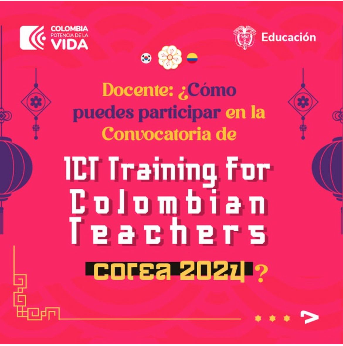 1. Convocatoria ICT Training For Colombian Teachers Corea 2024: Para conocer los requisitos y demás lineamientos para la postulación: ver el anexo: 1. Convocatoria Corea del Sur e ingresar al micrositio del MEN donde se encuentran todos los anexos y demás documentos de apoyo: 👉 Aquí