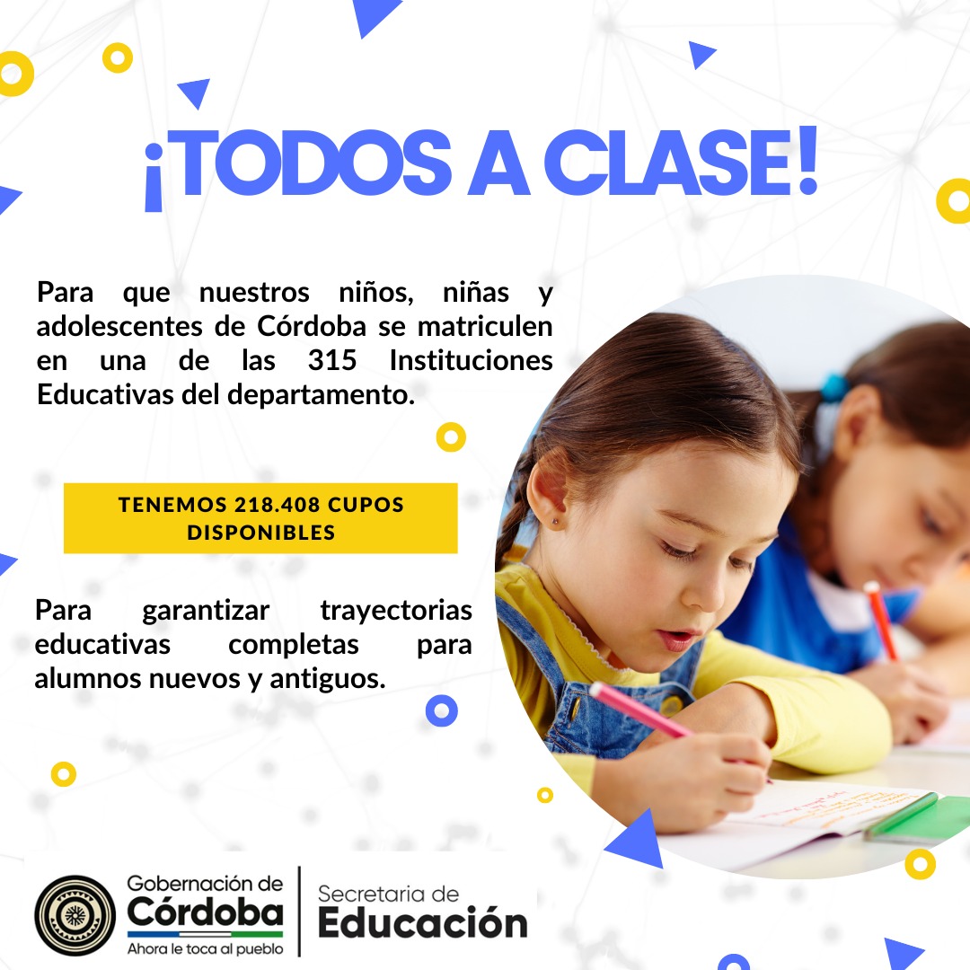 “Hoy iniciamos la campaña “todos a clase”. es la manera como queremos invitar a SECRETARIOS DE EDUCACIÓN MUNICIPAL, RECTORES, DIRECTORES RURALES DE LAS IE DE MUNICIPIOS NO CERTIFICADOS que hagan uso de los más de 218.408 cupos que tenemos en nuestras 315 instituciones educativas.