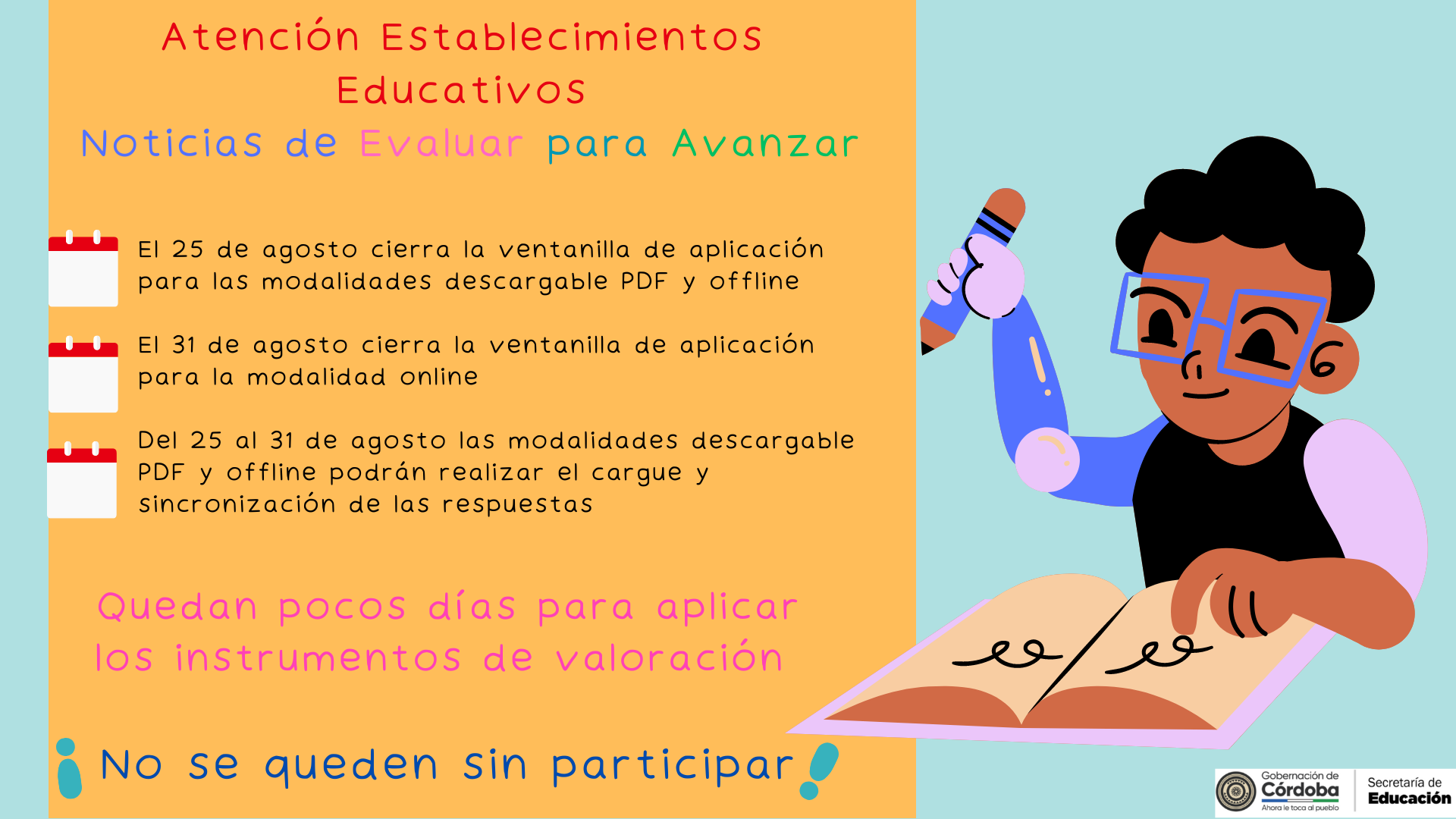 Para más información sobre el proceso o si usted ya ha enviado la información comunicarse con la funcionaría Diana Carolina Saquero Rivas al celular 3216349847 o al mail diana.baquero@cordoba.gov.co.