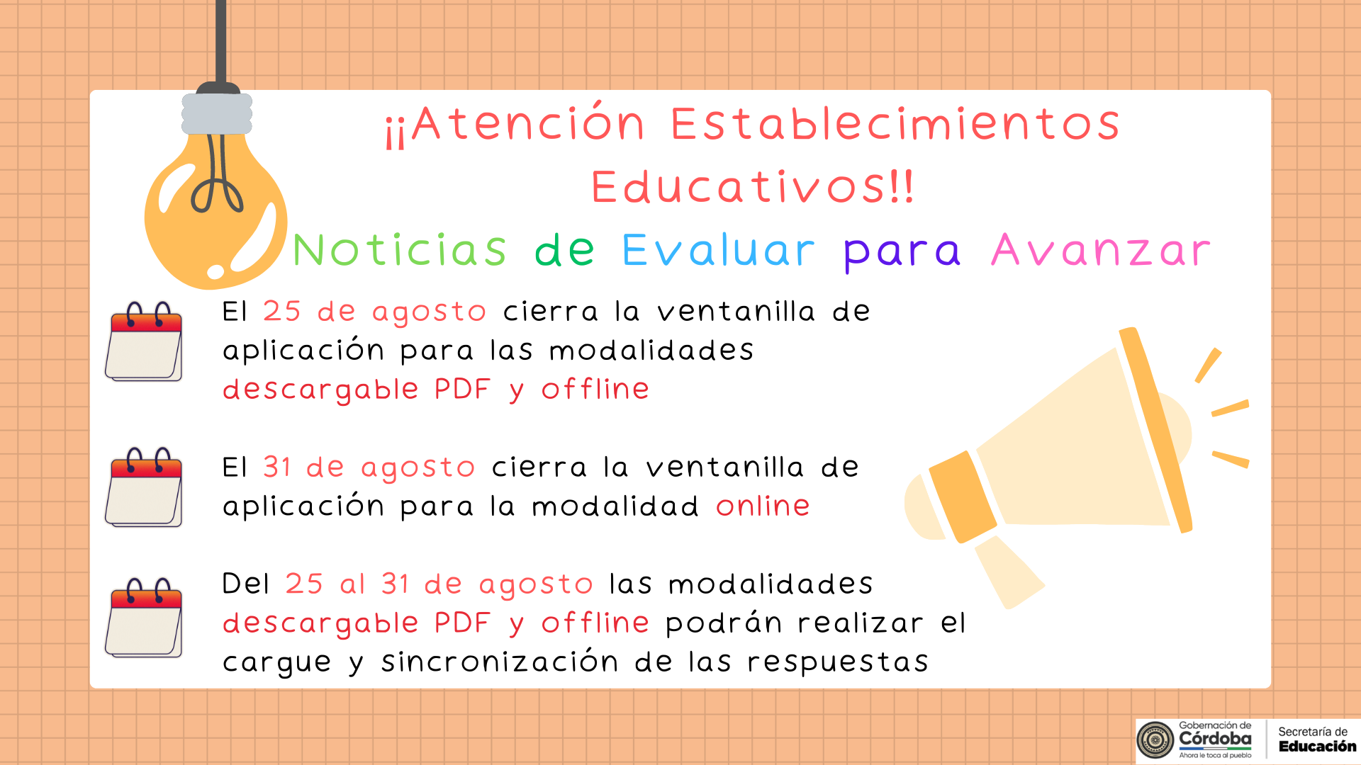 - El 25 de agosto cierra la ventanilla de aplicación para las modalidades descargable PDF y offline.
