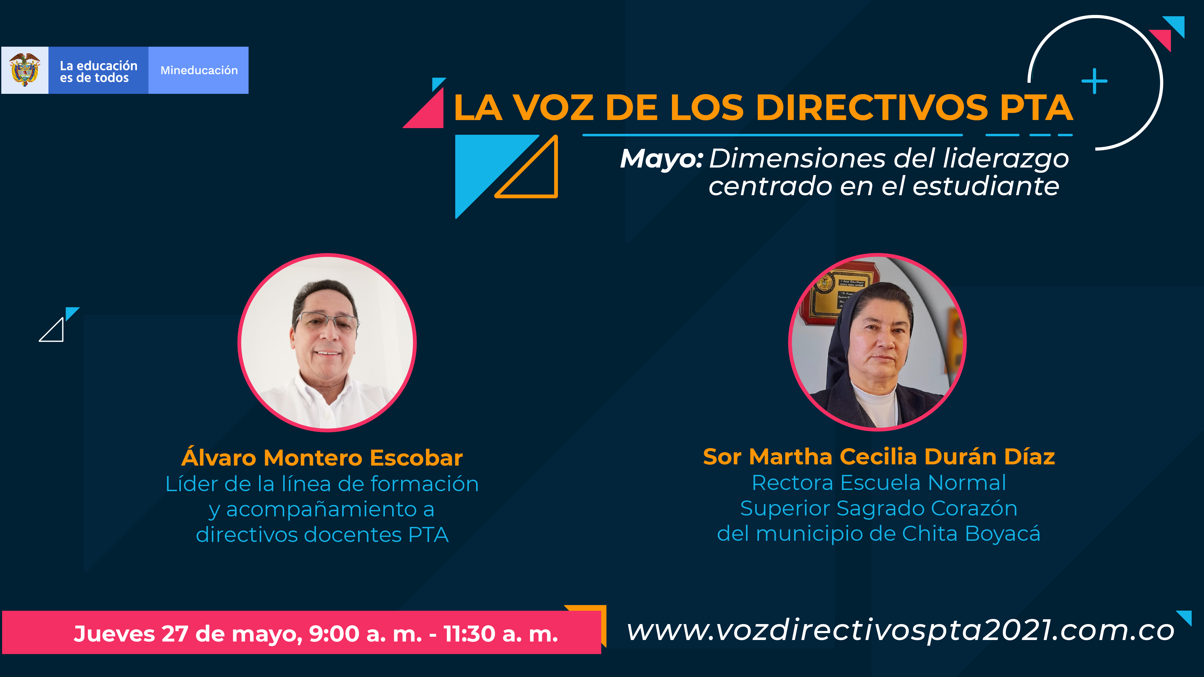 “DIMENSIONES DEL LIDERAZGO CENTRADO EN EL ESTUDIANTE” estará facilitado por Álvaro Montero Escobar, líder de la línea de formación y acompañamiento a directivos docentes PTA, y tendrá como invitada especial a Sor Martha Cecilia Durán Díaz, rectora de la Escuela Normal Superior Sagrado Corazón del municipio de Chita Boyacá.