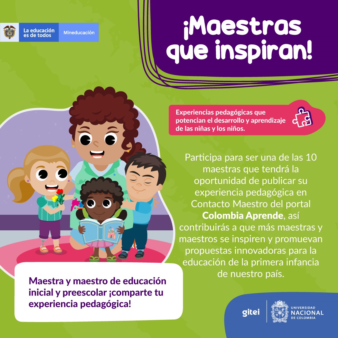 Cualquier inquietud, ampliar la información con Olga Lucía Vásquez, profesional de la Subdirección de Calidad de Primera Infancia, al correo electrónico ovasquez@mineducación.gov.co