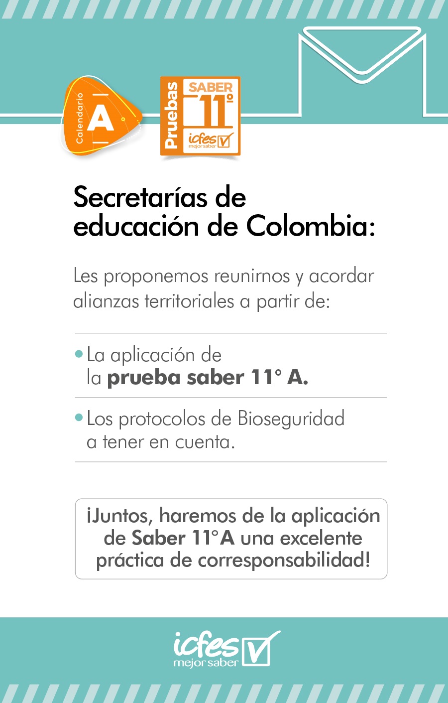 Como es de su conocimiento, todos los estudiantes de grado undécimo, pertenecientes al Calendario A, presentarán el Examen Saber 11º. La presentación del examen se llevará a cabo cumpliendo estrictamente los protocolos de bioseguridad, orientados a garantizar la salud y dispuestos desde el Gobierno Nacional y las administraciones locales.