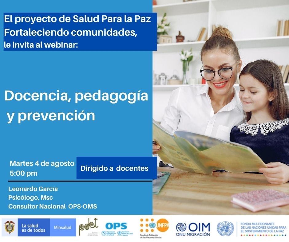 Invitación al webinar del proyecto salud para la paz "Docencia, pedagogía y prevención"
