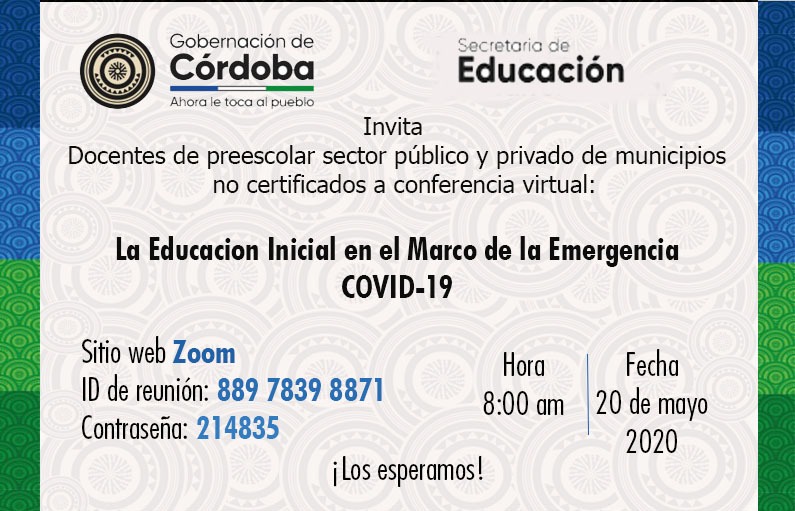A todos los maestros de Córdoba nuestra más sincera manifestación de aprecio, admiración y respeto por su labor. Hoy más que nunca han demostrando su nivel profesional y humano al enfrentar con nobleza y responsabilidad situaciones de emergencia, sin abandonar su misión, apoyando a los niños, niñas, estudiantes y padres de familia, desde la educación inicial a todos los niveles Educativos