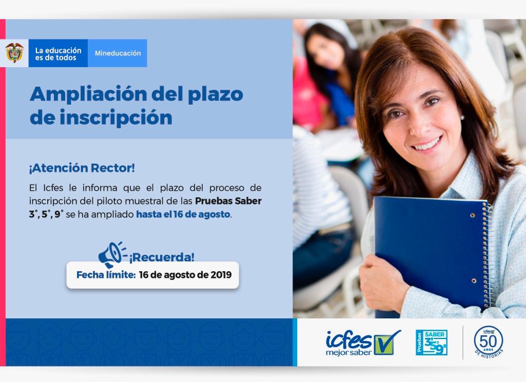 Recordatorio. Piloto Saber 3,5 y 9 inscripción a 12-08-2019
